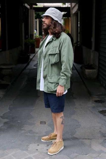 上身選穿多口袋背心或衝鋒衣,營造機能感,下身則可搭配工裝褲或機能性強大的風褲,再戴上一頂漁夫帽,感覺就會相當的時尚。常見的戶外品牌像The North Face、Patagonia、Arc'teryx都有推出自家的漁夫帽款,有興趣的型男不妨可以朝這幾個牌子去找。