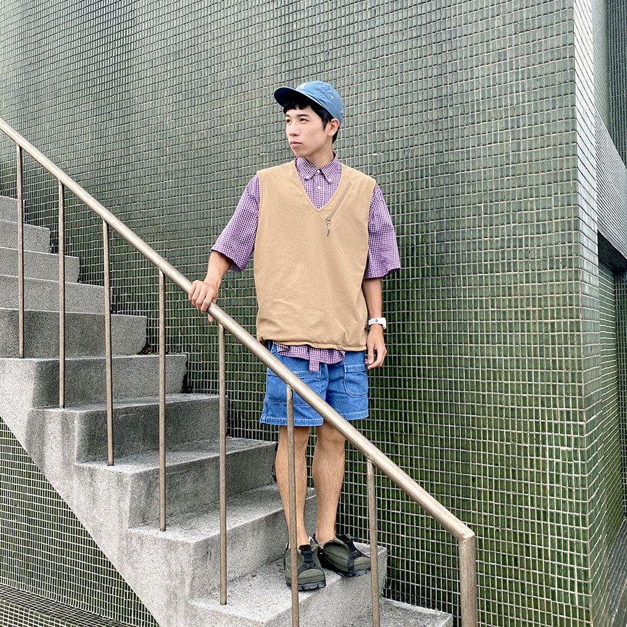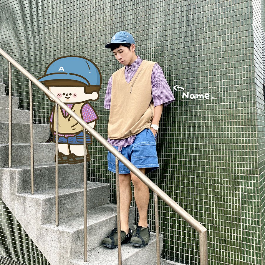 基本款的格紋襯衫是相當好搭配的單品,運用版型剪裁讓穿搭更有特色,OVERSIZE的背心、格紋襯衫以及短褲,寬鬆的空氣感能讓穿搭感覺更清爽,且有修身的效果,配上休閒的涼鞋,讓人有種街頭又休閒的度假風~