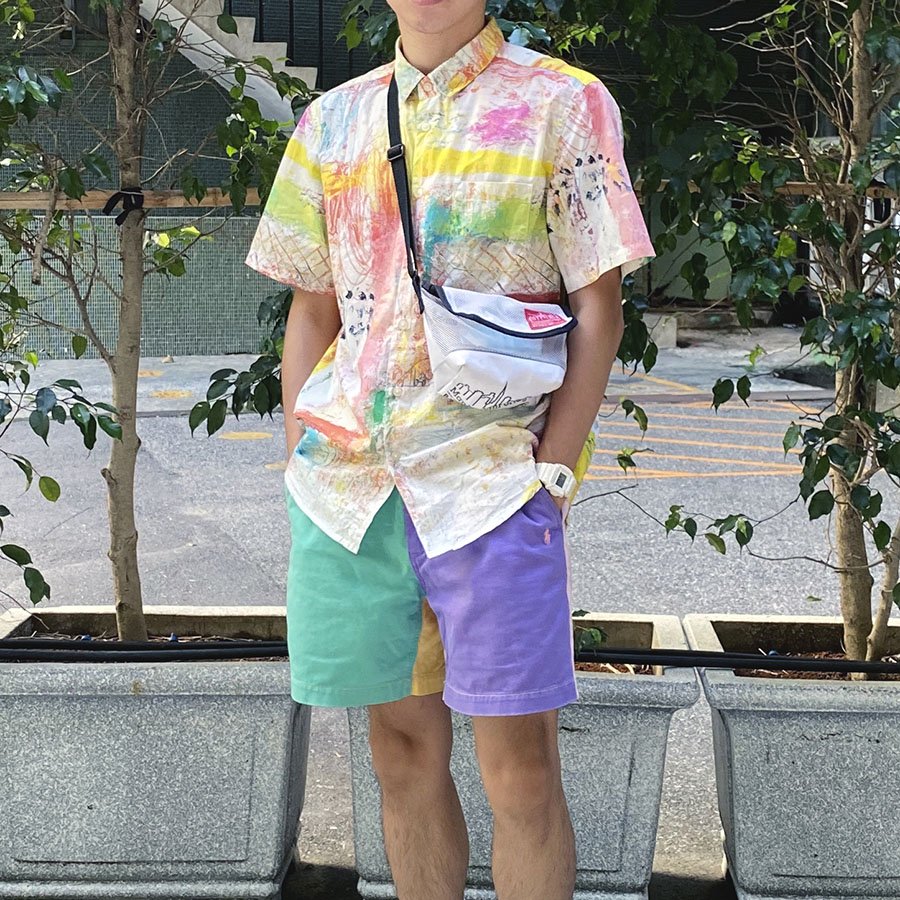 接下來是藝術感十足的蠟筆刷襯衫,心情很差的時候,就更會穿上多彩的衣服,好像能讓自己開心一點(笑)