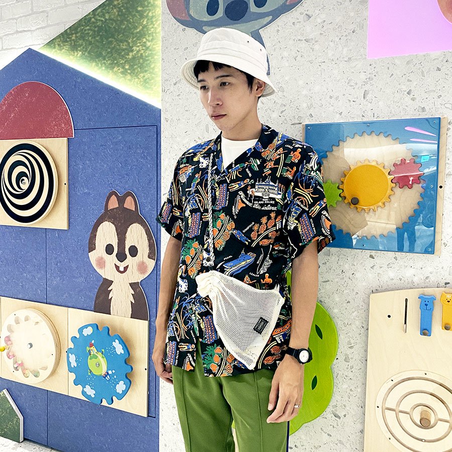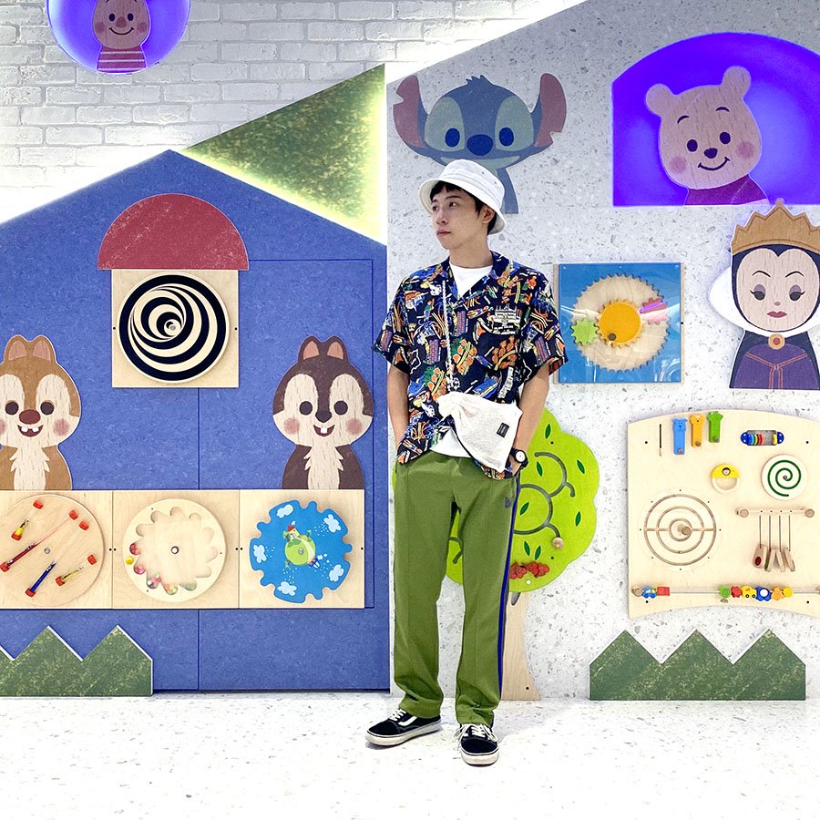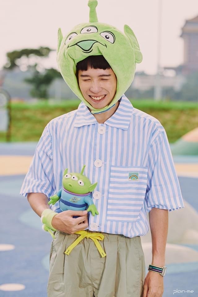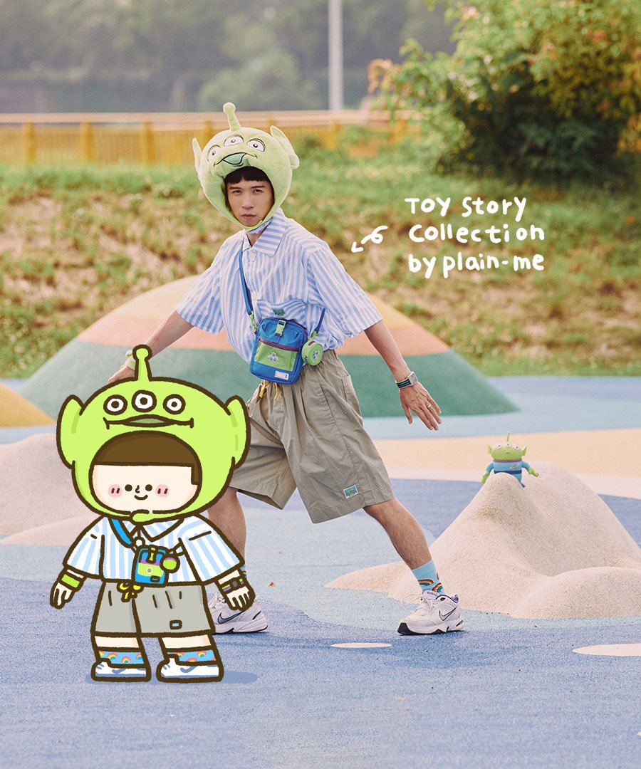 最後是近期正值玩具總動員25周年的穿搭!特別的是這件寬版的條紋襯衫,是根據玩具的衣服如果放大會變什麼樣子為概念,所以在領片和釦子的部分都刻意做的特別大,是非常可愛又值得入手的一件單品!!
