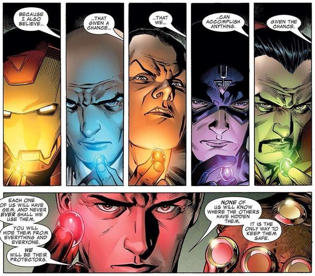 起初光明會的成員都是漫威宇宙中相對強勢的角色,包含了代表著「復仇者聯盟(The Avengers)」的 鋼鐵人 (Iron Man)、代表著「驚奇四超人 (Fantastic Four) 」的驚奇先生 (Mister Fantastic)、代表著「亞特蘭提斯 (Atlantis)」 的納摩 (Namor)、代表「異人族 (Inhumans) 」的黑蝠王 (Black Bolt)、代表著「 X 戰警 (X-Men) 以及變種人」的 X 教授 (Professor X),再加上代表「地球神話」的奇異博士 (Doctor Strange),而這六位成員在故事中都奉命守護無限寶石。