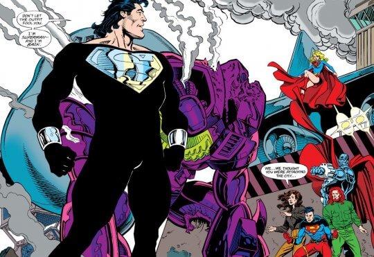 最早超人的黑色服裝是出現在1992年的漫畫中,當時這個設計是讓超人用來吸收太陽能,好讓超人能夠快點恢復超能力,並且在他虛弱時提供保護,也可以從漫畫中看到,黑色服裝中的「s」標誌是銀色的!