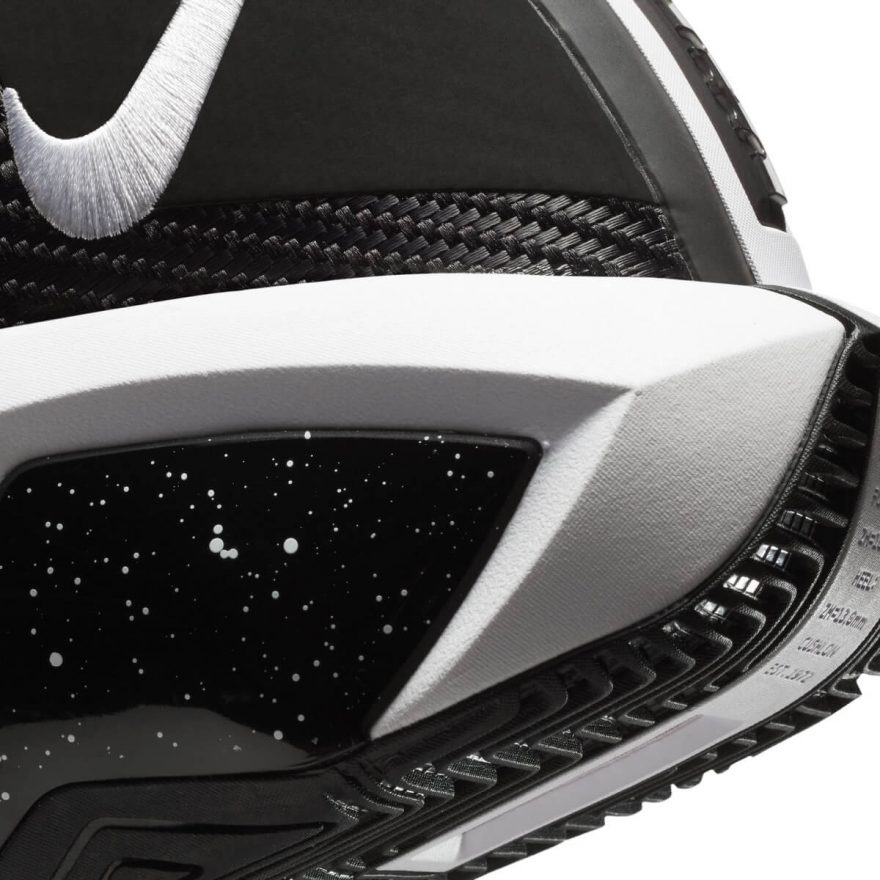 - 設計理念:X 型綁帶看起來很眼熟嗎?設計師 Jason Petrie 和其團隊借鑒了 Nike Air Raid 的設計調整了鞋身固定系統,使鞋款能適應不同的腳型。Jason Petrie 說,「這一綁帶系統可以讓你隨意地將球鞋調整成舒適的狀態,而不是在固定的方式下調整。」