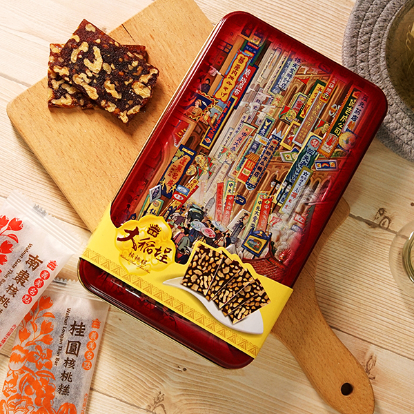 大稻埕核桃糕禮盒的包裝可是由曾獲台展賞獎的郭雪湖先生所描繪的迪化街的繁華街景,是藝術型爸爸的愛喔!