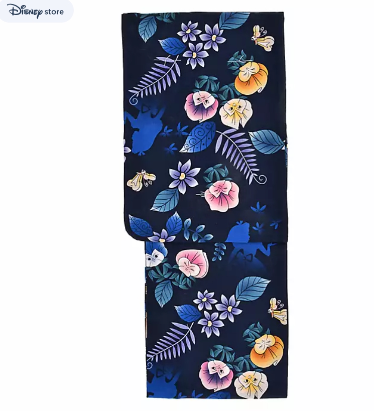 和米奇浴衣相反,愛麗絲款選用顯白的深藍色系,浴衣上有許多花草元素,有發現蝴蝶結上的祕密嗎?愛麗絲夢遊仙境裡超人氣角色「柴郡貓」竟隱藏在蝴蝶結裡!
