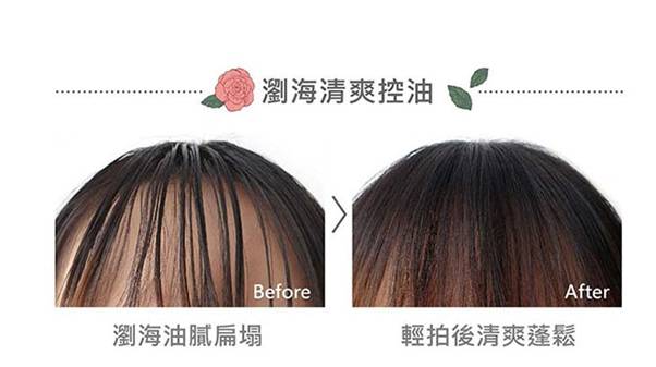 可用在容易出汗黏黏的身體上持久清爽、油膩一根一根的瀏海上(尤其是空氣瀏海)恢復蓬鬆、臉上定妝控油持久妝容