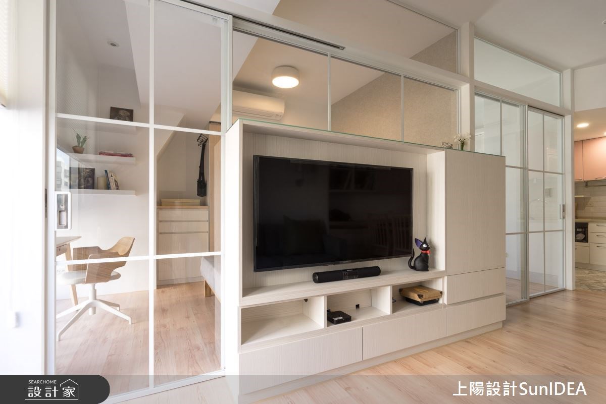 十二、12 坪中古屋的無印風關鍵字:#玻璃電視牆、#收納式餐桌