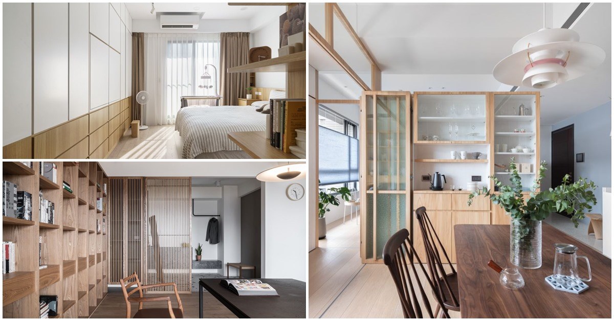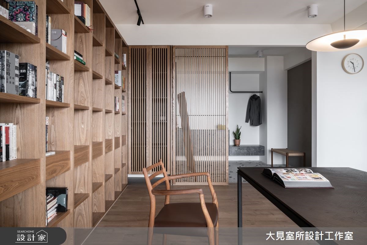 二、48 坪文青宅的無印風關鍵字:#格柵屏風、#格狀書牆