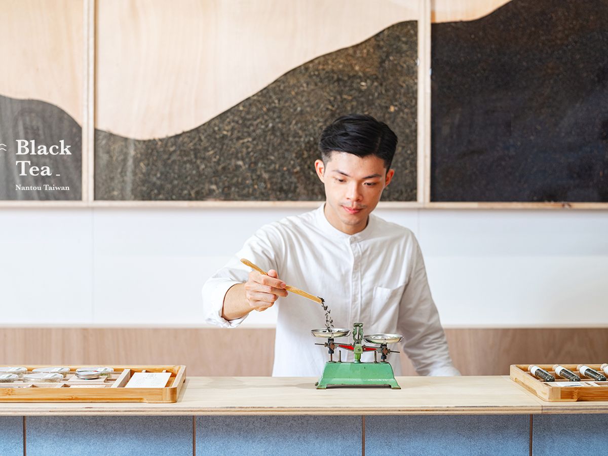 藉茶山、茶葉的概念元素,通過兩側牆面的設計,象徵茶農不分晝夜的產茶過程,再佐以物件陳列,淬鍊出茶的深厚人文底蘊。