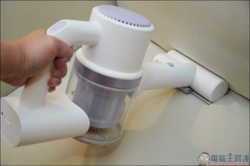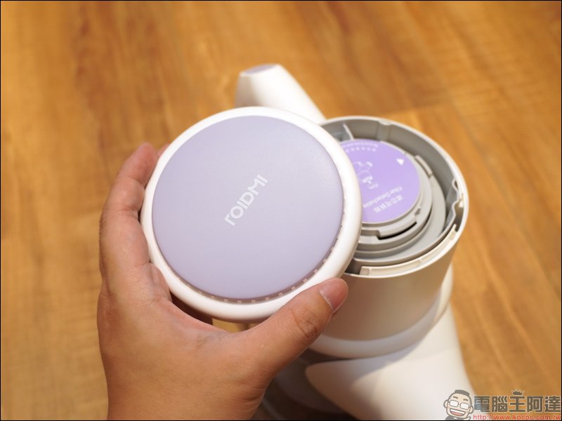 首先看到睿米 Z1 掃拖抗菌無線吸塵器的外觀,睿米 Z1 由法國設計師操刀設計,在延續睿米簡潔的設計風格同時,以時尚的霧面白機身搭配浪漫的薰衣草紫色點綴,超美的配色相當推薦重視居家擺設的女性消費者使用。