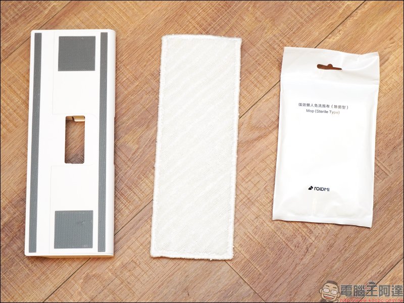 睿米 Z1 除了能吸塵清潔地面的毛髮、灰塵或棉絮等髒污, 也支援拖地功能。針對去污和抗菌兩種需求,也附贈耐用水洗拖布和強效懶人免洗拖布兩種選擇。耐用水洗拖布除了一般使用,也可搭配噴灑酒精或消毒水,清洗乾淨即可再重複使用,強效懶人免洗拖布則可用於需要加強抗菌的區域。使用者只要將拖布黏貼在濕拖組合板的魔鬼氈上,便能輕易完成安裝。