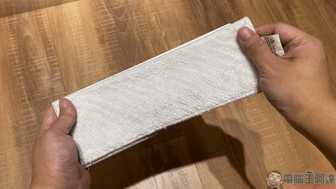 日常一般的拖地作業,筆者建議使用可重複水洗的拖布即可。在拖地前,可別忘了先將拖布沾濕後擰乾再黏貼於濕拖組合板上。拖地結束後,將水洗拖布取下清洗乾淨,晾乾後便能在下次重複使用。