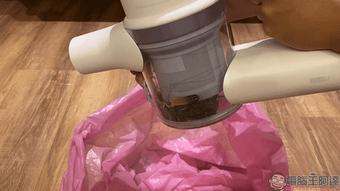 使用者只需按壓集塵桶旁的灰色按鈕即可直接開蓋傾倒垃圾,不怕手會直接與灰塵接觸而弄髒。