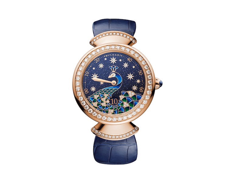 Divas’ Dream 的元素除了能穿梭在頂級珠寶與日常珠寶中,同時它也能排列組合成孔雀的意象化身為細緻而迷人的腕錶,Bvlgari 獨特有趣的組合方式展現出無窮的創意之餘,同時亦表現了品牌的頂級工藝。