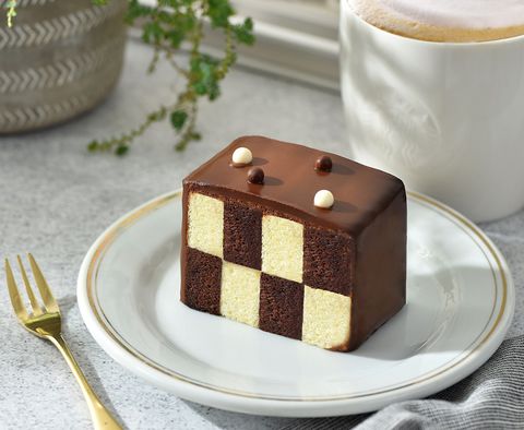 手工複雜棋盤堆疊的香草蛋糕與巧克力蛋糕,中間使用新鮮香蕉製成的香蕉泥拚起,外面再淋上苦甜巧克力淋醬,香濃的香蕉風味又帶有紮實的巧克力口感。《葷食》