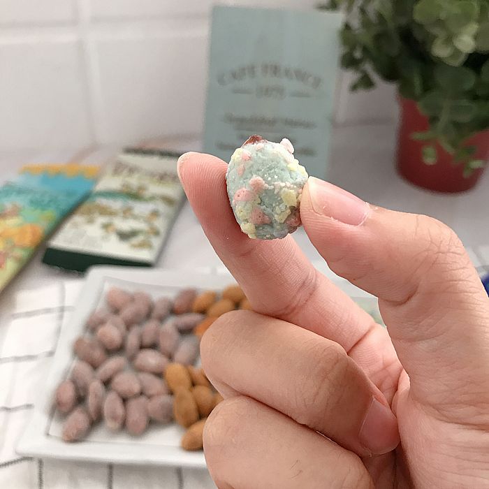 雖然數量較少,但它的杏仁都有裹著厚厚的糖衣