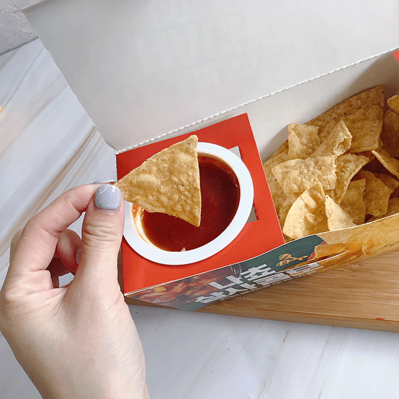 莎莎醬辣辣的非常夠味,搭上酥酥脆脆的玉米片,實在太順口了!