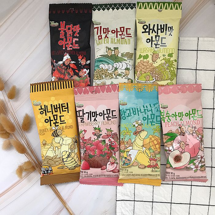 只要去韓國玩,都一定會隨手買上一包的零嘴「Tom‘s~杏仁果」