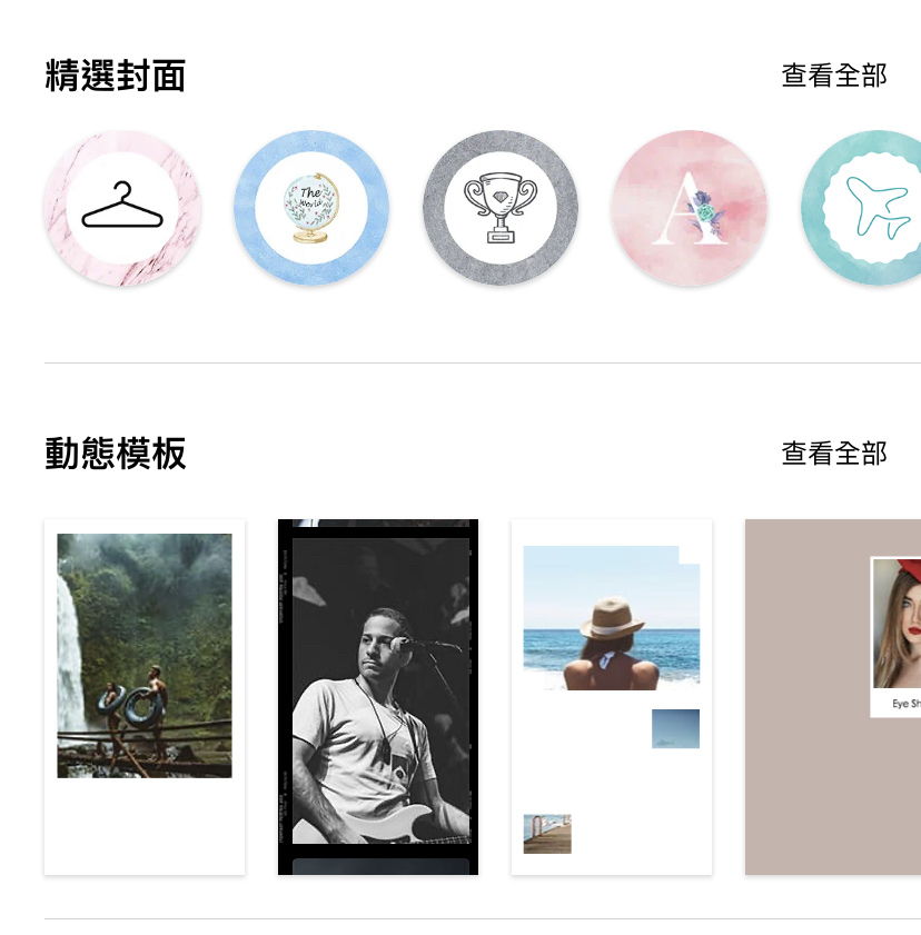 ▲可以製作精選動態的封面,還有動態模板(有動畫效果的影片模板)可以選擇,讓你的限動就是比別人炫,真的超級好用!