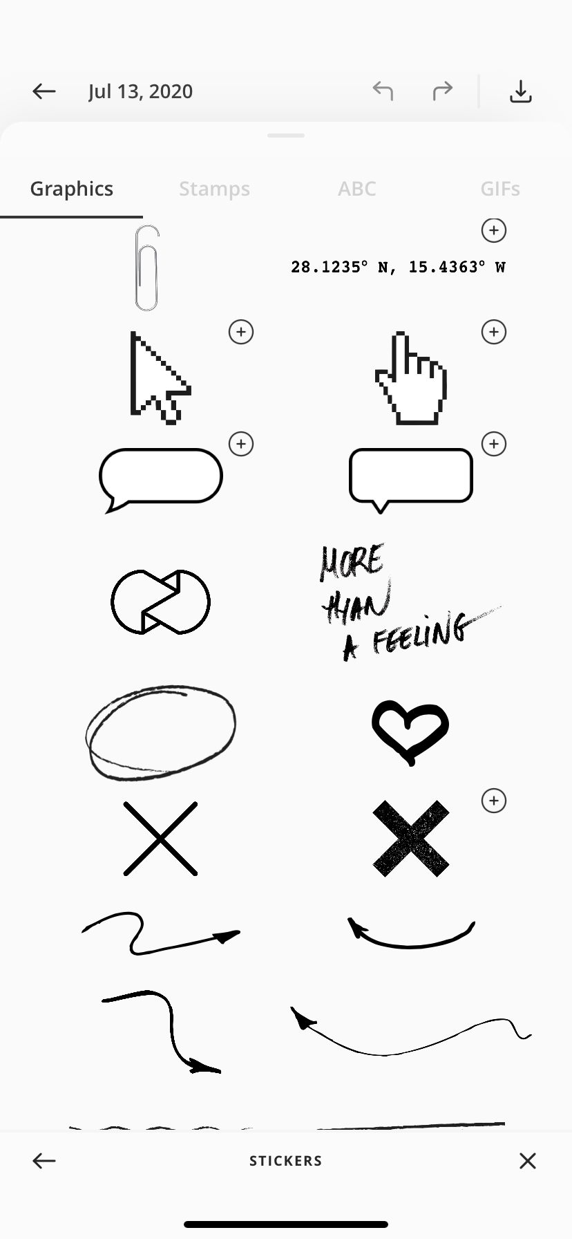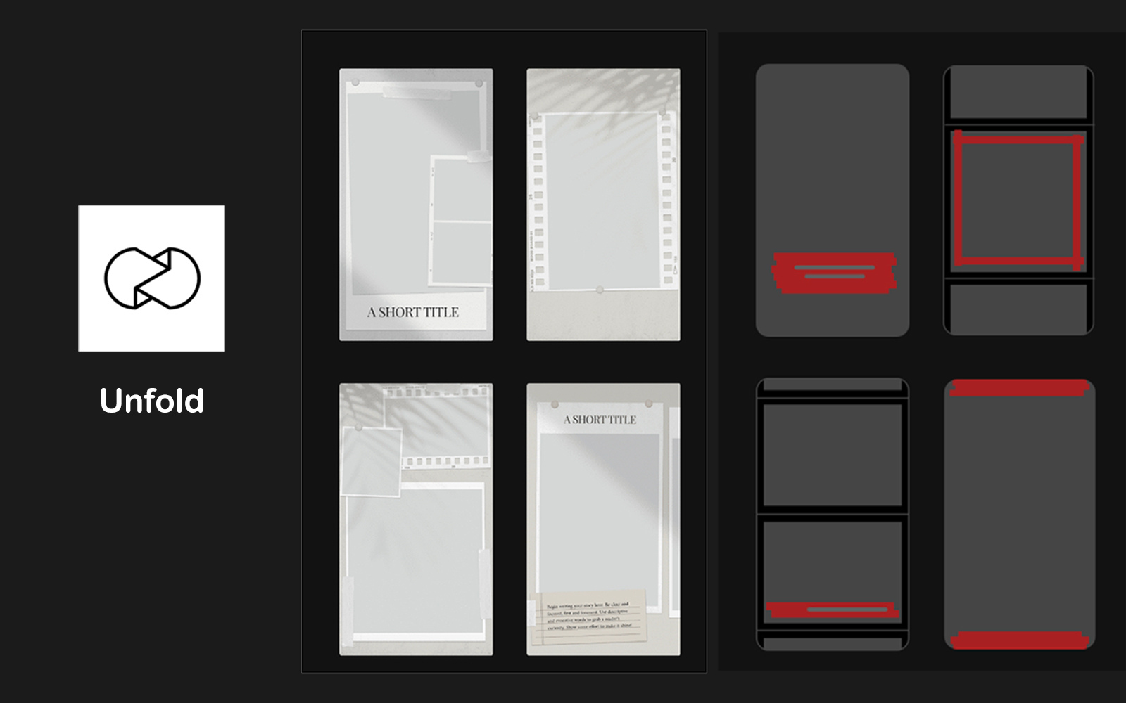 ▲Unfold的小貼紙都比較簡約,最聰明的是這些stickers可以轉換成黑色或白色(深色照片用白色,淺色照片用黑色)