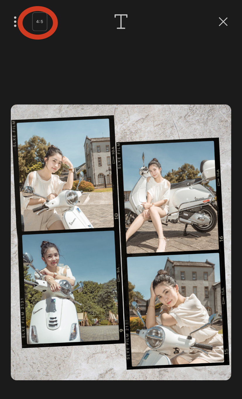 另外,一般限動的比例都是9:16,如果想用Storyluxe排版做IG貼文也可以喔!只要將左上角的比例調成4:5就可以了。