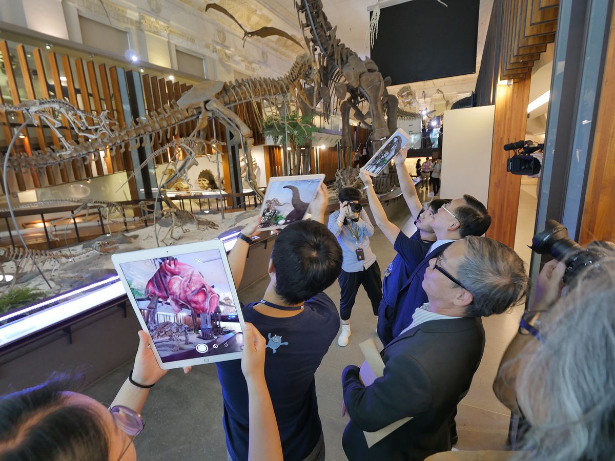 AR擴增實境技術是博物館典藏加值與觀眾體驗的未來趨勢,與VR虛擬實境相比,AR應用更為便利,只需使用手機或平板電腦即可體驗互動樂趣。此次「臺博掌上博物館」首次運用「AR室內定位導覽系統」,讓民眾能身歷其境的體驗展覽,除了有定點導覽與標示重點展品的功能,更結合3D影像讓原本靜態的化石或骨骼標本「動」起來。除了以科技為博物館典藏加值外,更使博物館教育形式多元化,讓個人行動裝置成為專屬導覽員,也為博物館的教育推廣及觀眾服務注入新的活力。