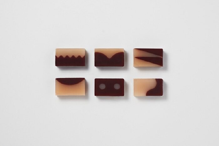 羊羹上的幾何圖案便是將Enzo Mari設計的商品型態,象徵性的刻入羊羹圖樣,有別於一般素面樣式,加入西方風格的幾何圖案後,變得現代感十足,是不是別有一番風味呢?