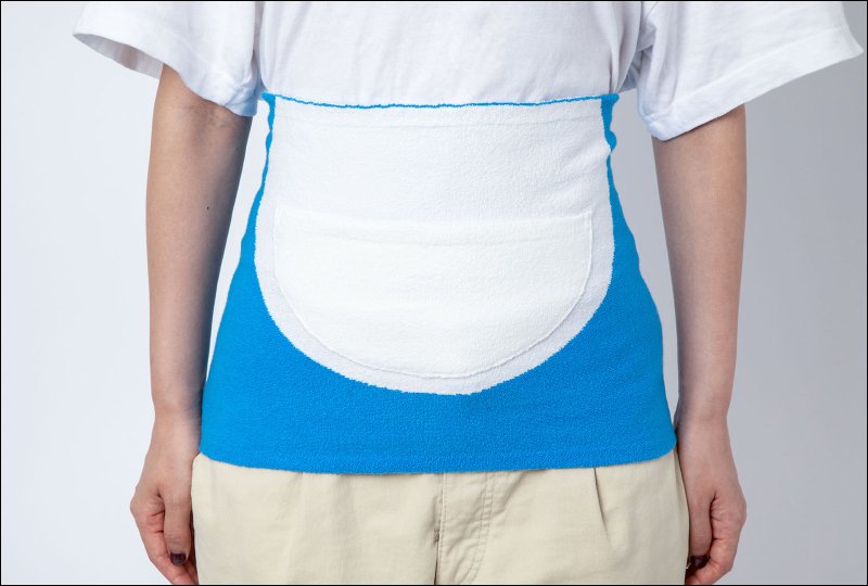哆啦A夢50週年紀念款的「四次元百寶袋肚圍」也同樣兼具舒適、透氣與強吸水的特性,只要將它圍上就可以直接變身哆啦A夢啦!