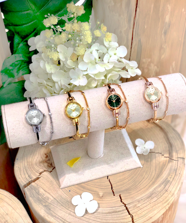 如果穿著打扮偏向洋裝、蕾絲、碎花系列的氣質女孩~~那就可以挑選韓國品牌 JULIUS 的 JA-1033 手錶,第一眼看到應該就眼冒愛心了吧!!錶帶如同手鍊般,是JULIUS最具氣質夢幻的鍊帶系列,搭配上天然鋯石有點 bling bling 的感覺!!完全能夠展現出女孩的專屬氣質