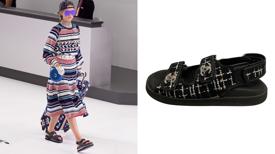 香奈兒老爹涼鞋自2016首次推出,後來雖然被很多人稱為「醜鞋」,但每一季依舊超級熱賣,一直有話題,不用怕它立刻過氣!而材質部分除了現在最流行的皮革款,還有橡膠、布料以及其他顏色。
