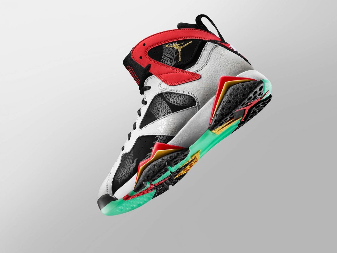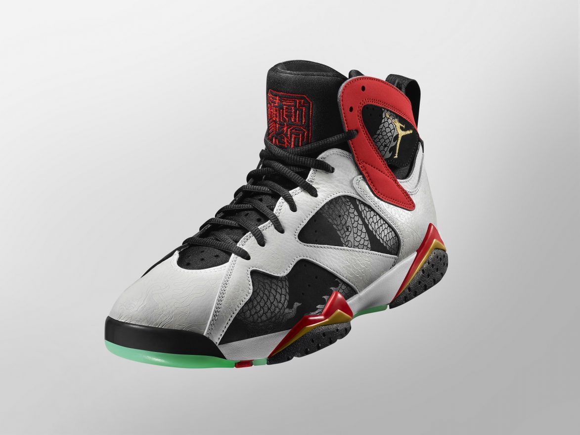 Jordan Brand 「紫禁之巔」系列產品中的經典復刻鞋款 Air Jordan VII Retro GC ,鞋身圖案採用不對稱的陰陽設計,外側暗藏一條具有立體雕刻感的飛龍,沉穩大器下盡顯經典傳奇。內側圖案靈感來源於紫禁城宮殿建築群紋理中絢麗畫作的圖案,並以編織手法呈現,致敬「斗拱」這一巧奪天工的東亞古典建築特色。鞋底飾有紅色及金色勾邊,半透明綠色大底具有夜光效果,展現傳統美學與未來感的完美融合。