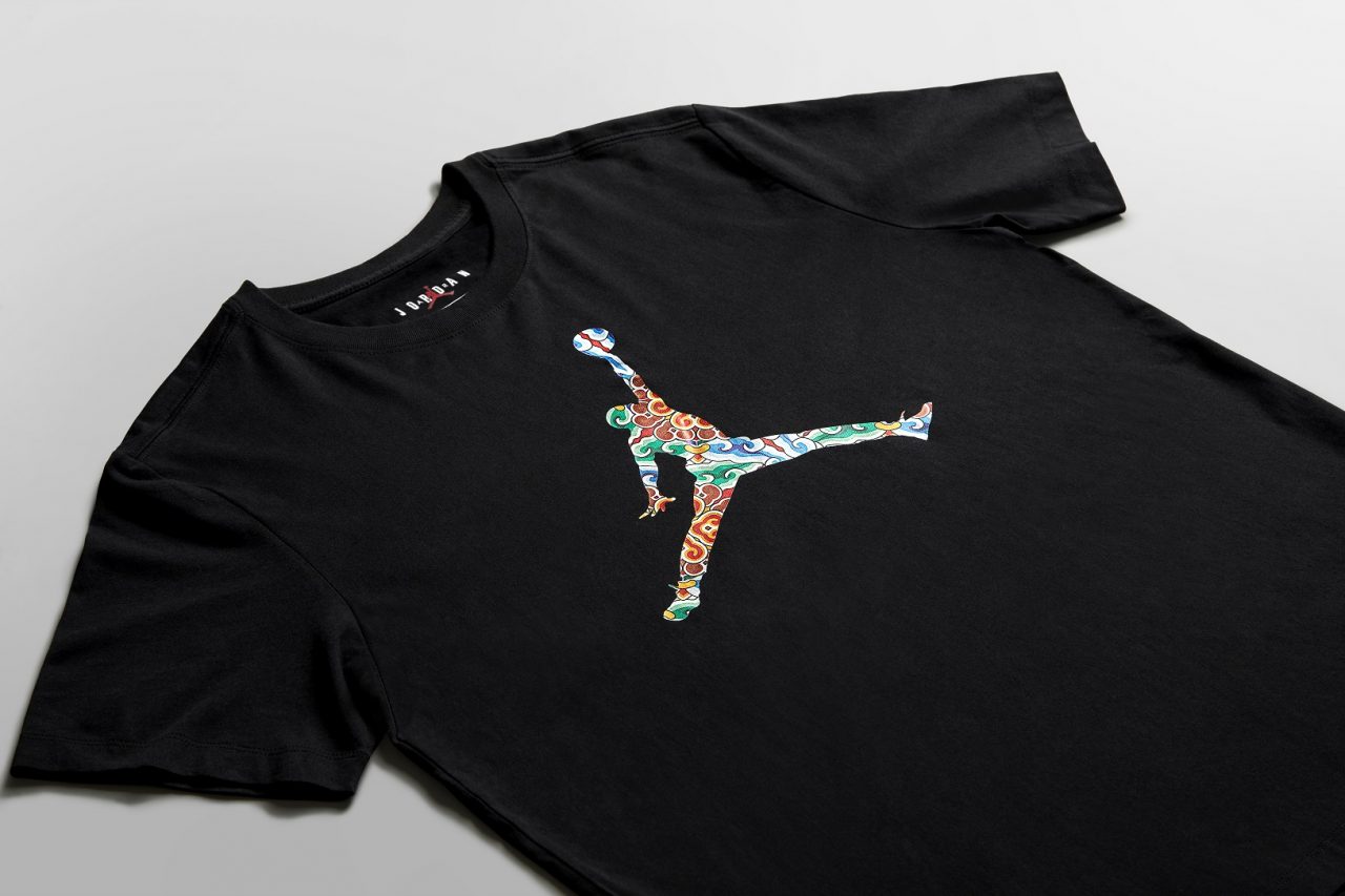Jordan Brand 「紫禁之巔」系列還提供了服飾產品,將飛龍圖案、Jumpman Logo、玉璽風格的設計和彩色紋飾圖案進行搭配設計,呈現在包括立領外套和短袖在內的服飾單品之上。