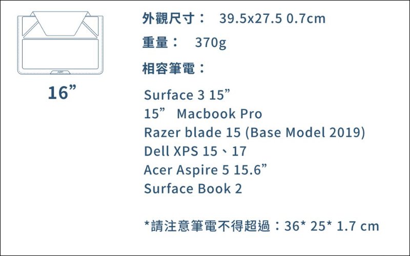 至於 15 吋以上的筆電,就是直接選擇 16 吋版本了。不過當然仍得留意筆電尺寸提醒,像是部分機身太厚的電競筆電,可能就不適用。