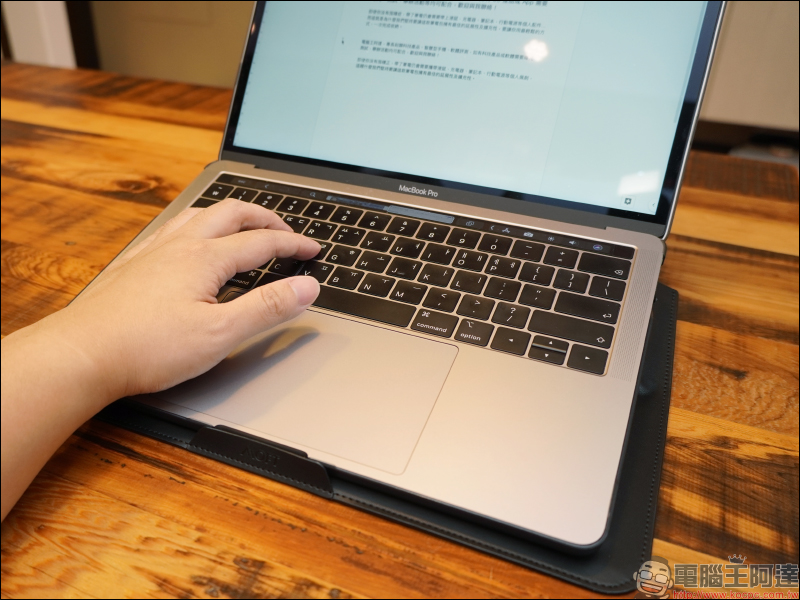 至於支撐方面,由於 iPad Pro 巧控鍵盤的事其實整片是硬質的,支撐在 MOFT 隱形立架筆電包的筆電架上也是相當穩。
