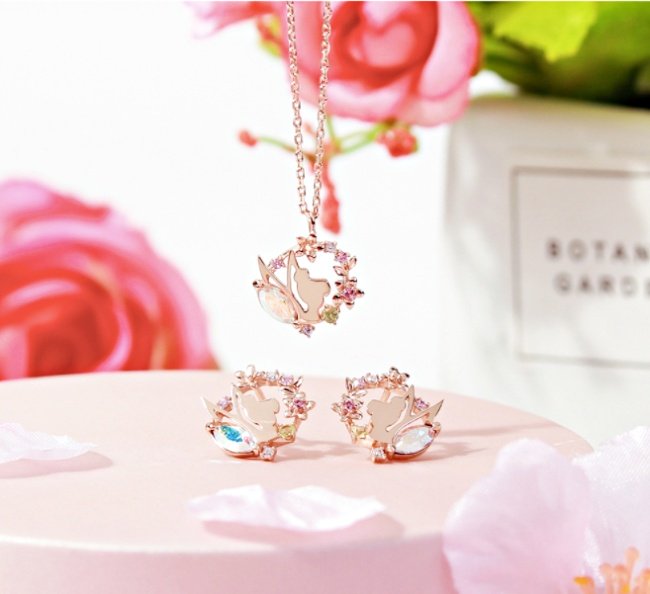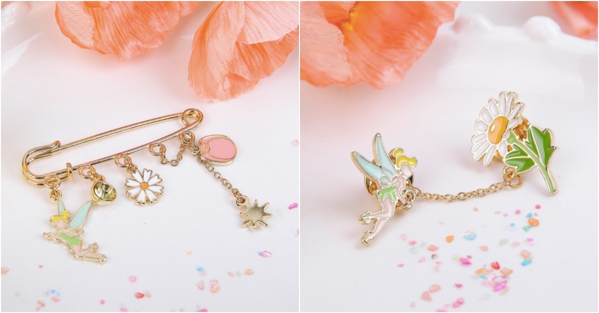 不只飾品美到窒息,聯名小物也夢幻到宛如仙境(製造地是標示夢幻島吧XD),小仙子、彼得潘以及溫蒂飛上精緻聯名別針、掛飾上,搭配唯美的花朵以及水鑽,不論掛在那,就像主角們跟著你翱翔~