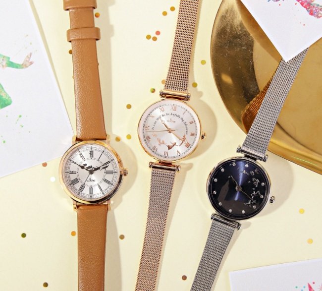 還記得《小飛俠彼得潘》中,彼得潘接走溫蒂與他的兩個弟弟「約翰和麥可」飛向夜空、前往夢幻島的經典橋段嗎?這波聯名直接把故事神還原在鐘錶上,讓錶面變成那夜的滿滿星空,一共推出3種款式,棕色錶帶款還完美複製飛過英國大笨鐘的經典畫面,超具收藏價值。