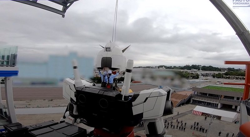 全高 17 公尺、總重 26 公噸的「RX-78F00 鋼彈」,最大目標就是要實現實體大鋼彈可動的可能性,在影片中,可以看到隆重地舉行了「上頭式」,順利將頭部安裝至「RX-78F00 鋼彈」上,影片中也能看到頭部的大小是可以塞進兩個成人的。