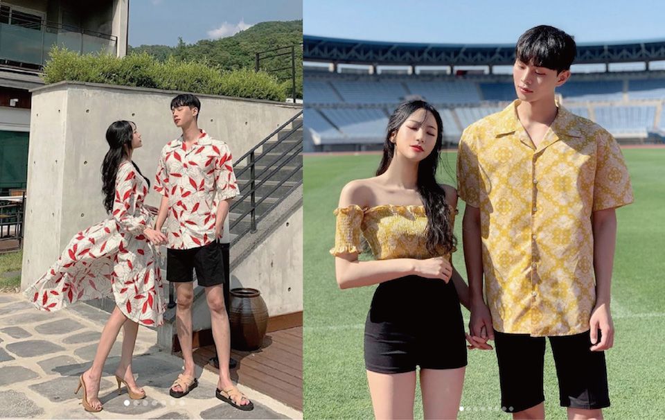 同花色、甚至同材質的情侶裝算是比較高階的技巧。選擇方面,編建議以「男友上身花色」做呼應搭配。好比說,男友的花襯衫對應女生的花裙、花上衣;又或者男友的皮衣對應女生的皮革單品,都會讓彼此的穿搭又甜又時髦!