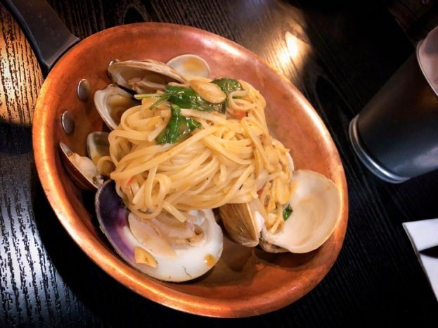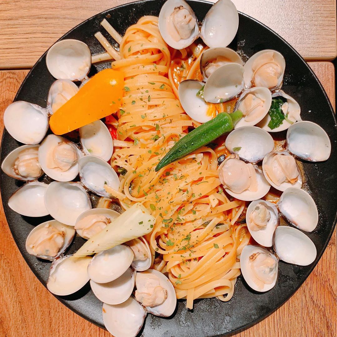 說到義大利麵,絕對不能忘記這間隱身在信義區巷弄的「30 Thirty 老酒館」,它們家的燉飯、義大利麵都是老饕一再回訪的經典品項。而這道「白酒蛤蜊義大利麵」用的是產地直送的新鮮文蛤,而且有兩顆特別大,為料裡加了許多分!麵體是比較道地的做法,以細扁麵為主、麵心偏硬,吃起來清爽且不會過於軟爛,夏天吃非常適合。除了義大利麵外,妞編輯額外推薦「明太子透抽」也是必點,店內燈光美氣氛佳,非常適合聚餐~