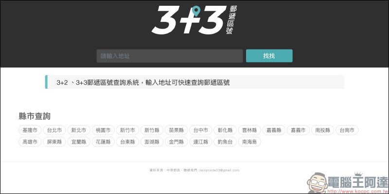 找找 3+3 郵遞區號,快速查詢郵遞區號與地址翻譯