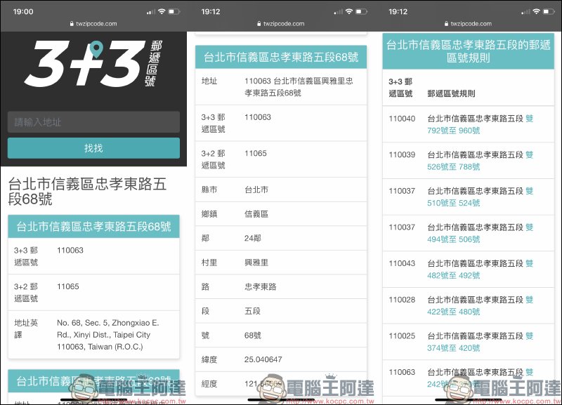 由於「找找3+3郵遞區號」線上查詢工具為網頁形式,因此無論是電腦、平板、或智慧型手機都可以輕鬆查詢:
