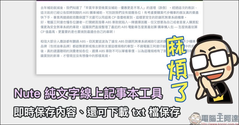 Nute 純文字線上記事本工具,即時保存內容、還可下載 txt 檔保存
