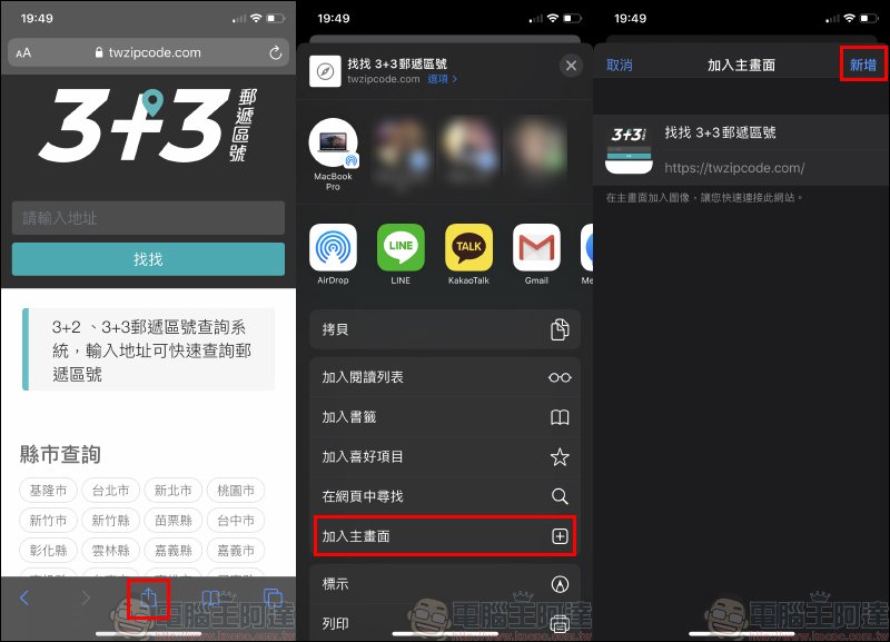 而 iOS 用戶也可以將「找找3+3郵遞區號」加入到主畫面,讓他可以更便利直接在主畫面快速開啟: