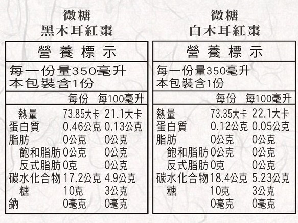 今天要來分享的是微糖的黑、白木耳紅棗,而且仔細一瞧似這樣一瓶350ml裝,每一瓶的熱量其實才73卡左右,不僅可以讓你有飽足感之外,也不用怕攝取過多熱量。