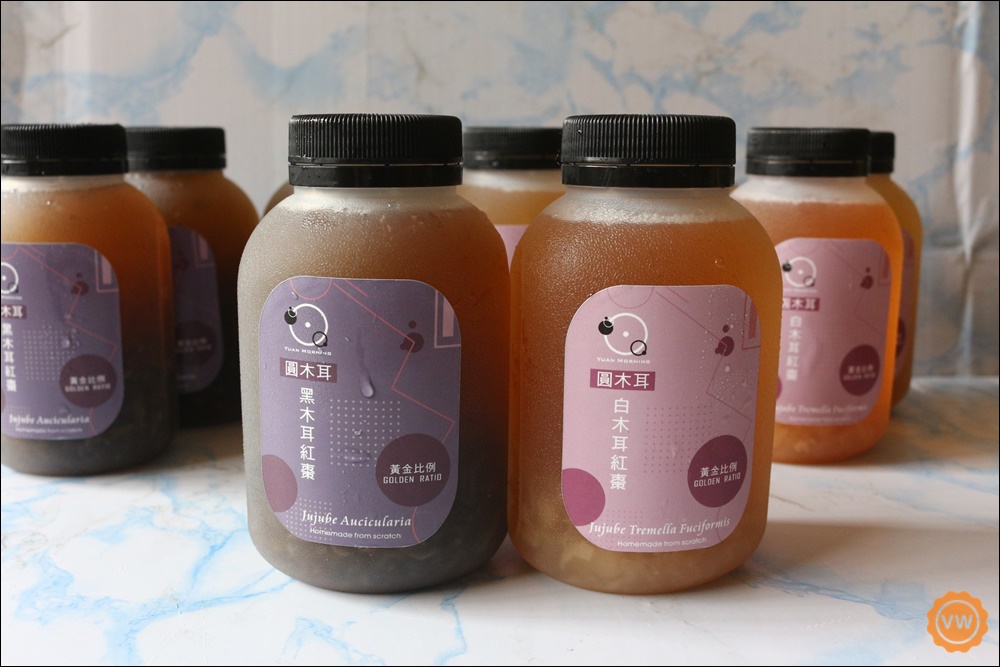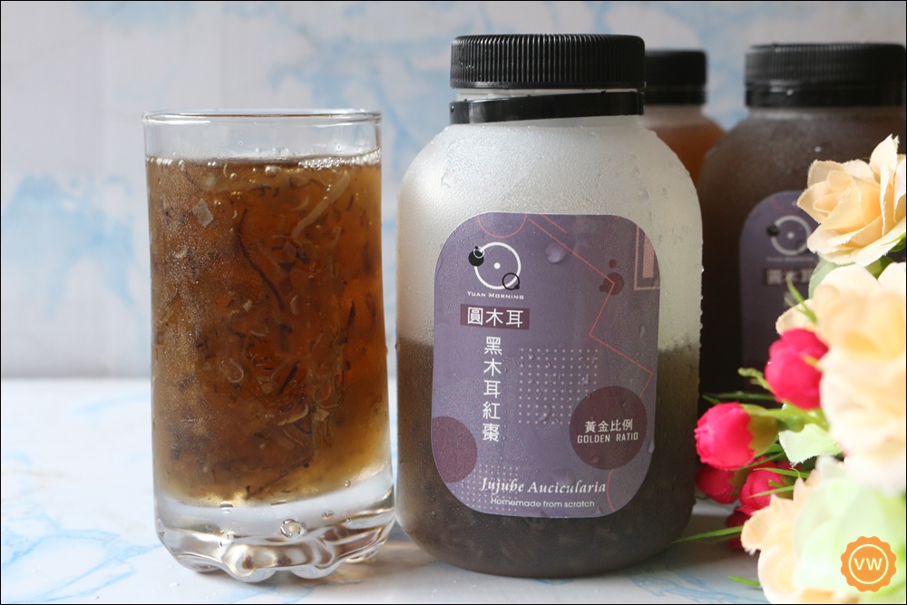 圓木耳白木耳紅棗(微糖)裡面的食材也是一樣相當單純,除了主要的食材是選用有機的白木耳之外,其他成份也跟黑木耳的一樣只有水,冰糖及紅棗汁,喝起來的口感也較黑木耳的更有軟Q口感!