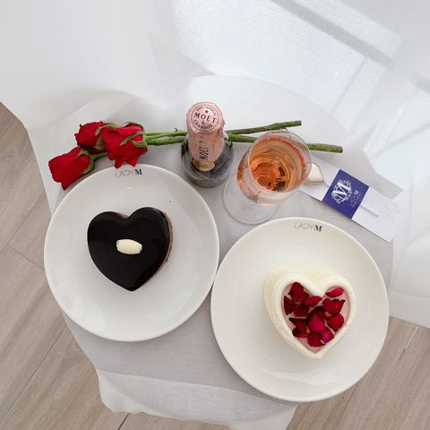 七夕情人節即將到來,Lady M 今年的情人節限定組合將「 玫瑰千層、皇冠巧克力」 兩種風味特製成迷你愛心造型,並以紅玫瑰妝點千層蛋糕,搭配 Moët 香檳,為 你打造七夕甜蜜微醺氛圍!