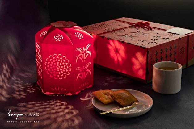 小茶栽堂中秋禮盒主打款「映月燭花」,以明代詩詞為發想,在月圓之夜觀看燭花弄影,映照佳節內心的歡愉之情,上蓋有六角宮燈搭配紙雕藝術。今年在金融家蛋糕則開發三款全新口味,分別為「南瓜栗子」、「紫薯芝麻」和「薑黃肉桂」,蛋糕體帶有榛果香氣,結合台灣在地蔬菜,外型則是象徵財富吉祥的金磚!