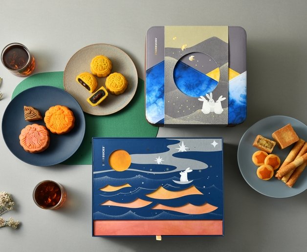 星巴克帶來「月光寶盒」,禮盒外觀以「山中觀月」為主題,內含起司松露奶皇月餅、草莓乳酪奶皇月餅、咖啡核桃鳳梨奶皇月餅、核桃焦糖咖啡月餅和蘭姆葡萄夾心餅乾,妞編輯大推以義式松露牛肝菌為內餡的「起司松露奶皇月餅」,除此之外還贈送「中杯那堤兌換券」二張和「雲染手巾」,另外還有月光交響曲、月光花園、月光小夜曲和月光樂園等選擇!