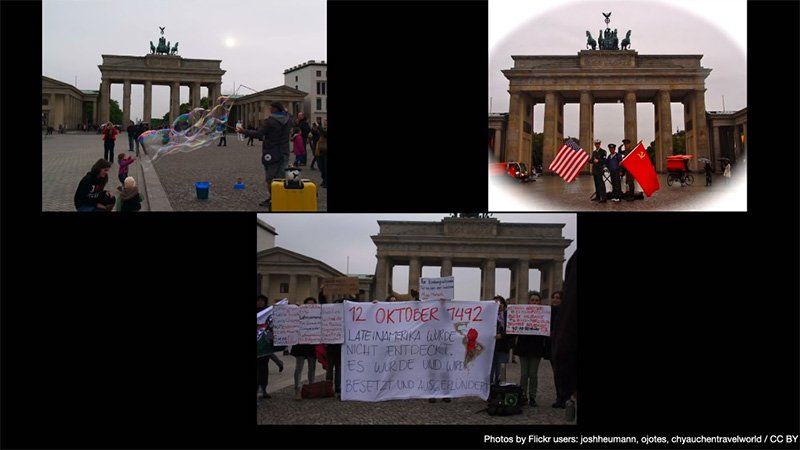 大家可以對照一下上面右邊合成後的圖片,可以看出這張沒有干擾的空景圖是由下面這些圖片經過神經網路與演算法的運作疊合而成。 - 藉由演算法清除目標主體前的人、物等非固定式遮蔽物,保留下壯觀的建築本體。