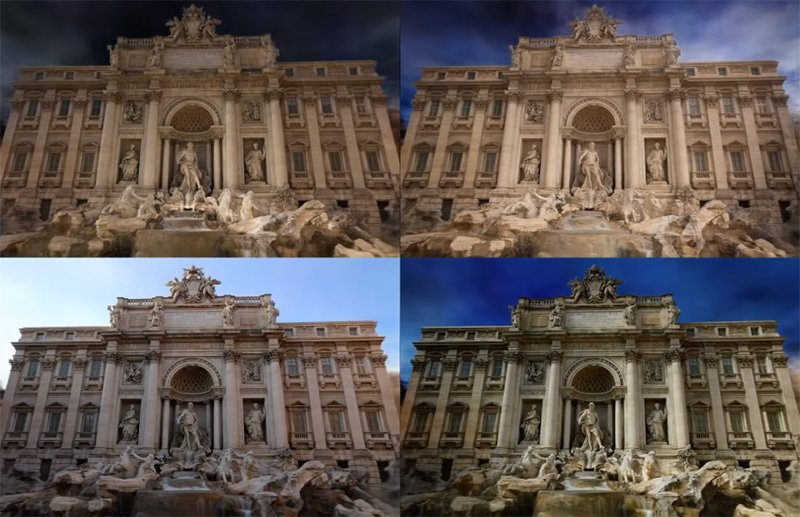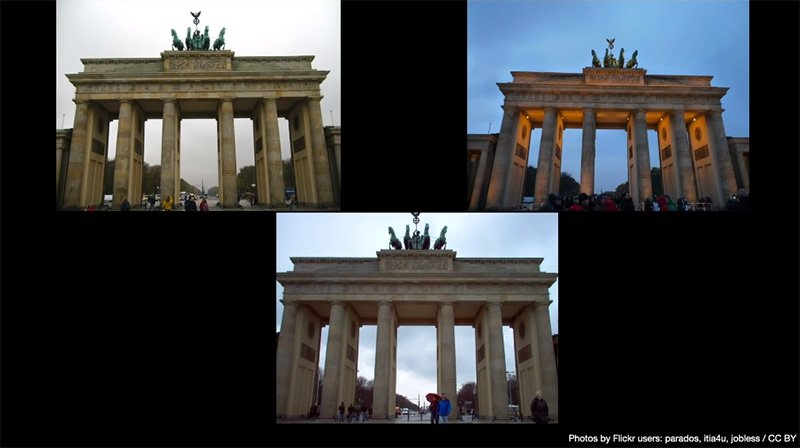 如果想要製作出乾淨、漂亮的 3D 照片,又或是到景點去觀光想要拍攝沒有雜物干擾的地標、建築物是一件非常困難的事情,特別是一些知名的景區,往來車輛、人口眾多,更是天方夜譚。Google 研究團隊所開發的新 AI 工具 NeRF-W 採用基於 Python 程式語言的神經輻射場技術(NeRF),以神經網路將網路上收集來的數張靜態照片加以疊合,只保留下照片中的主要標的影像,移除照片中多餘的人、車與非固定遮蔽物,即便這些疊合的照片中光源不一,演算法也會自動平衡光線,重建出極具真實感的 3D 影像。